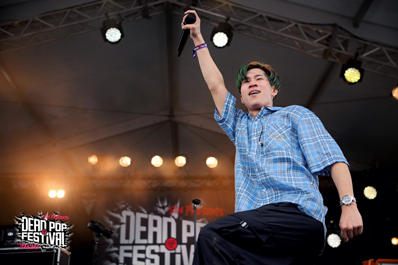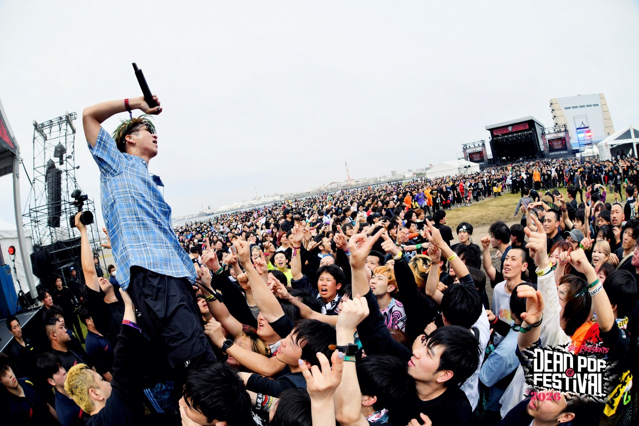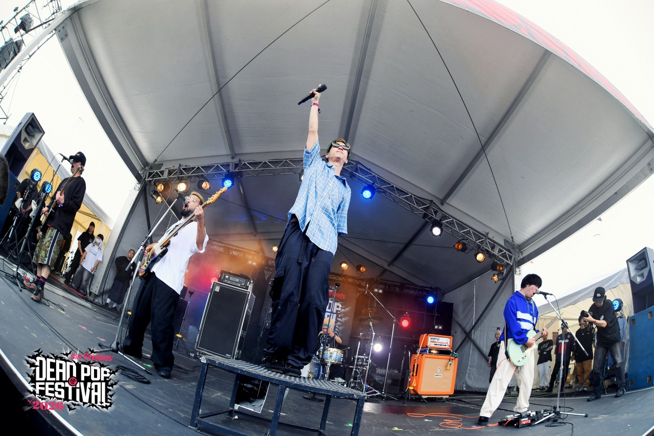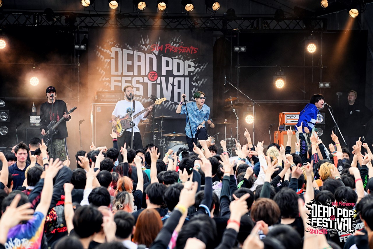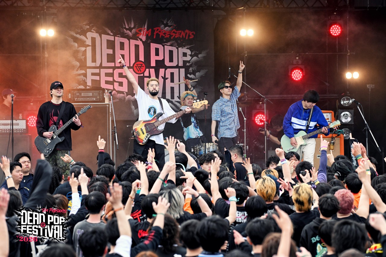 SEが流れ、メンバーが続々と登場し、Enomoto(Ba)の「きたぜ! DEAD POP!」の合図と共にフロアがクラップハンズ! 「In and out」でライブスタート。続く「Y.D.S」では中盤に自然発生的にモッシュピットが出来上がるなど、詰めかけたオーディエンスとの相性もバッチリ。間髪入れず、Ruiが「そんなもんか? 足りねぇよ、全員拳を上げて、ここまで来てみろよ!」と檄を飛ばせば「The Crisis」でステージ目掛けてダイバーが発生していた。その後、一時の隙もなく、「普通にライブやっても面白くねぇからさ。くそでけぇサークルピットを作ってくれ! 全員で輪になって最高の景色を作ろうぜ!」と呼びかけて、初期からの人気曲「Superman」に! バンドの古くからのファンも多くCHAOS STAGEに来ていたのだろう。曲のイントロが流れると同時にクラウドサーフが起こり、中盤にRuiが「真ん中を開けろ!」と叫ぶと、フロア全体が1つの輪になるほどの大きなピットが出来上がり、そのまま全員でシンガロング! 最高の一体感と共にSee You Smileの空間を生み出していた。