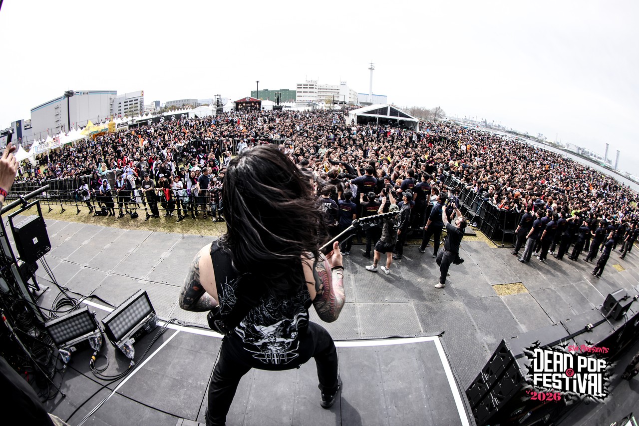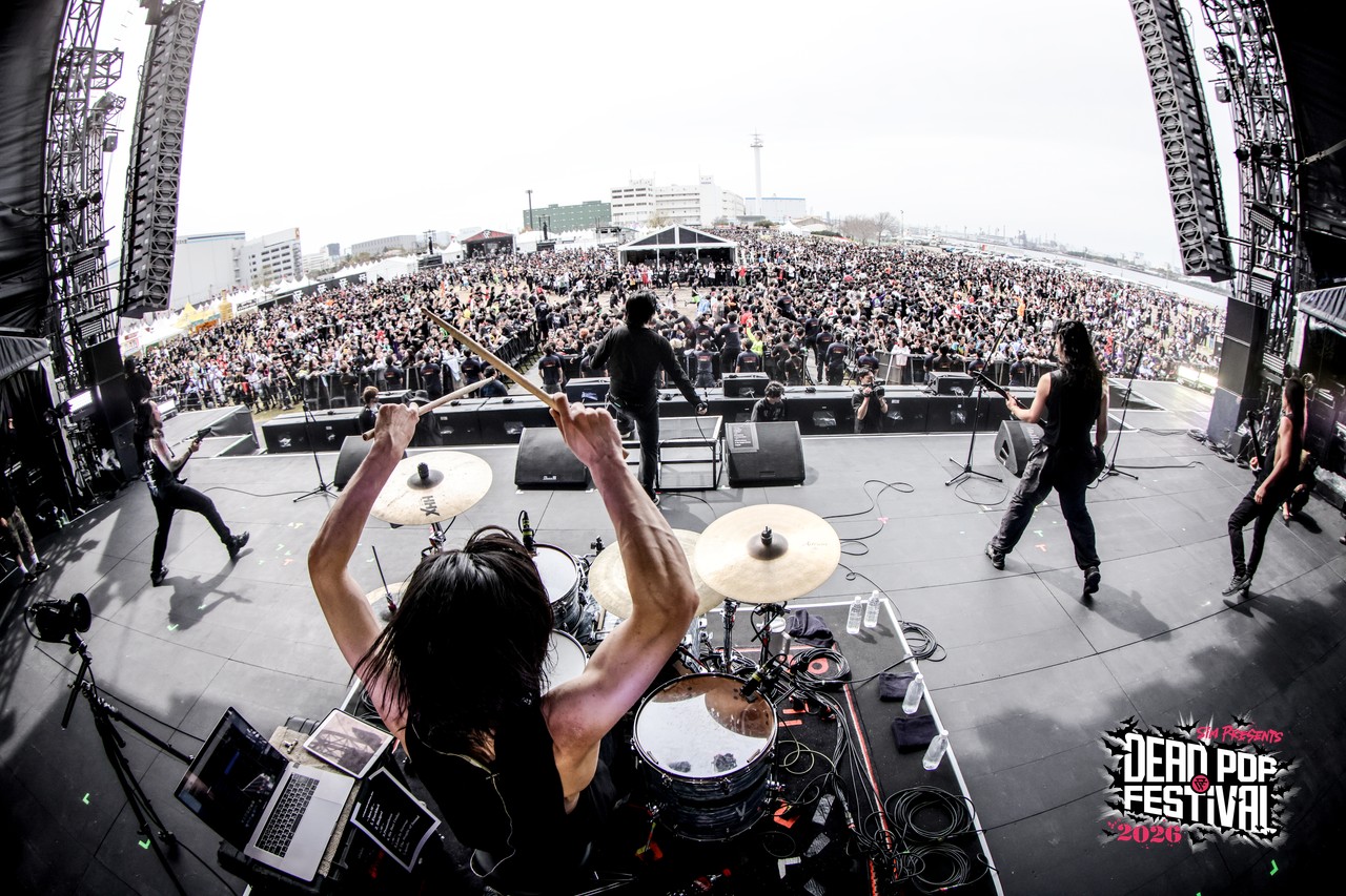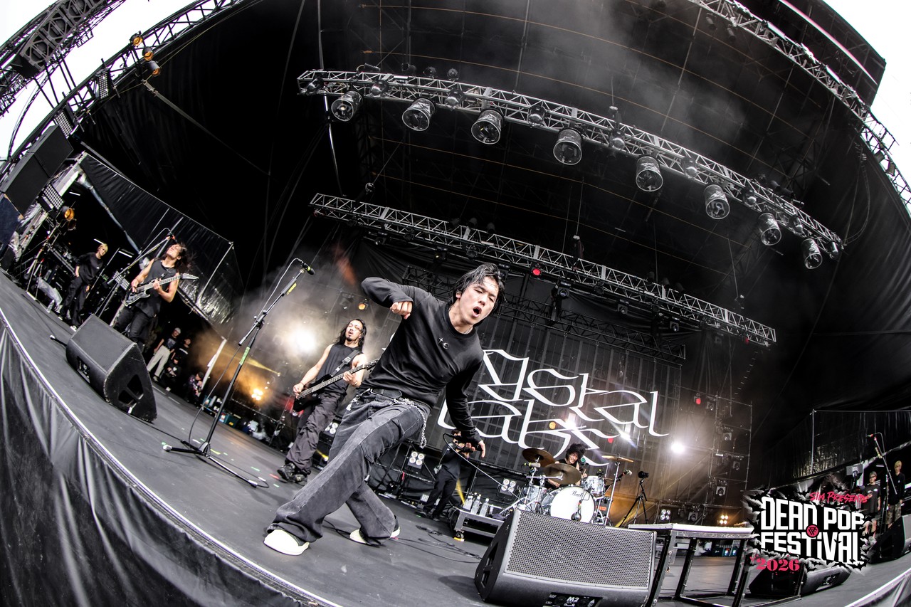 ここでYD(Gt)がMCを挟む。DEAD POP FESTiVALのオーディエンスや、これまで世界をともに駆け回ってきたSiMへの感謝を口にしつつ、バンドの苦労も語る。しかし国籍や学歴は関係なく、人生はそれぞれだと。大事なのは音楽とリスペクトだ、と嬉しそうに話す姿が印象的だった。そのMCに対してPKは「俺がCrystal Lakeにいるのは自分で選んだ道だから。そしてCrystal Lakeも選んだ道だから。全力で来い!」と応えた。そのままコールされたのは、ここ最近のバンドの集大成とも言える「The Weight of Sound」。エモーショナルでヘビー、そしてメロディアスなサウンドがフロアの心を突き刺す。これがCrystal Lakeの今だと示す力強い音が空へ抜けていく。ラストはYDが、自分の大事なものを信じ、Crystal Lakeを信じてこれからもヤバい曲を作っていくと話し、名曲「Apollo」で締めくくる。叙情的なスタートからギアが上がる過程が圧倒的にかっこよく、ドラムとギターが圧を増すにつれ会場の熱量は頂点に達した。歓声は突き抜け、最後の一音まで全員がその瞬間に集中していた。