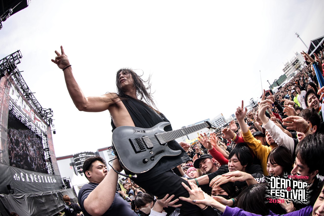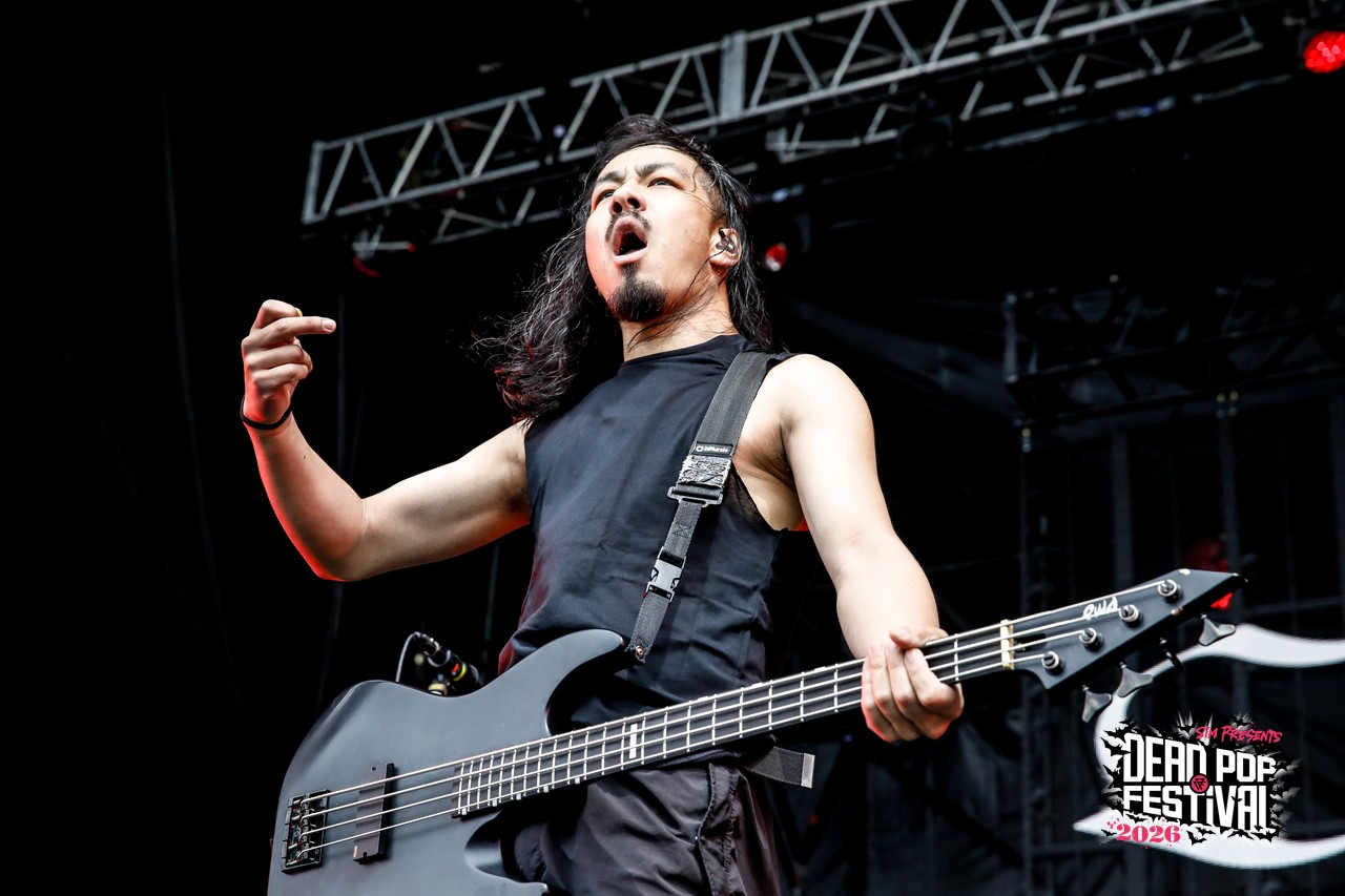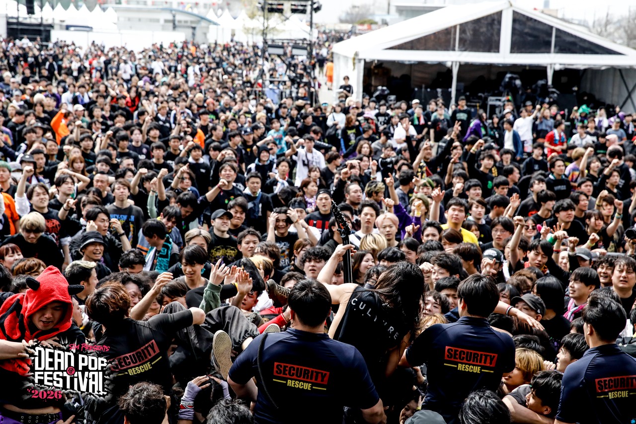 ここでYD(Gt)がMCを挟む。DEAD POP FESTiVALのオーディエンスや、これまで世界をともに駆け回ってきたSiMへの感謝を口にしつつ、バンドの苦労も語る。しかし国籍や学歴は関係なく、人生はそれぞれだと。大事なのは音楽とリスペクトだ、と嬉しそうに話す姿が印象的だった。そのMCに対してPKは「俺がCrystal Lakeにいるのは自分で選んだ道だから。そしてCrystal Lakeも選んだ道だから。全力で来い!」と応えた。そのままコールされたのは、ここ最近のバンドの集大成とも言える「The Weight of Sound」。エモーショナルでヘビー、そしてメロディアスなサウンドがフロアの心を突き刺す。これがCrystal Lakeの今だと示す力強い音が空へ抜けていく。ラストはYDが、自分の大事なものを信じ、Crystal Lakeを信じてこれからもヤバい曲を作っていくと話し、名曲「Apollo」で締めくくる。叙情的なスタートからギアが上がる過程が圧倒的にかっこよく、ドラムとギターが圧を増すにつれ会場の熱量は頂点に達した。歓声は突き抜け、最後の一音まで全員がその瞬間に集中していた。