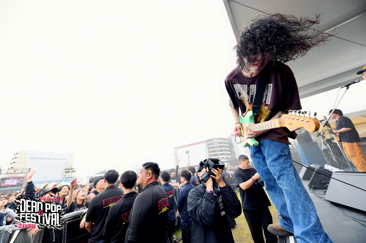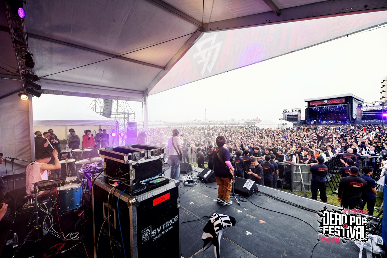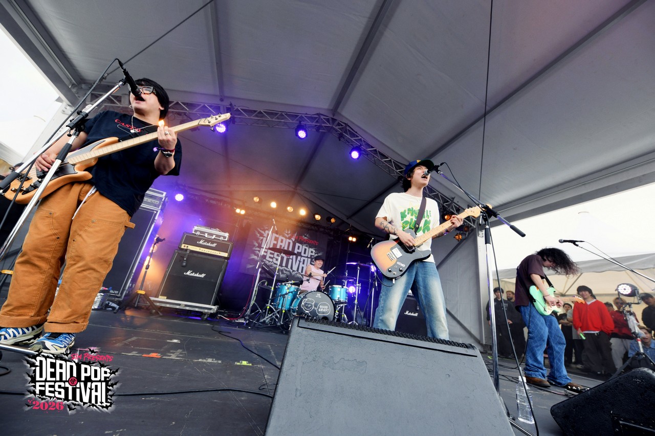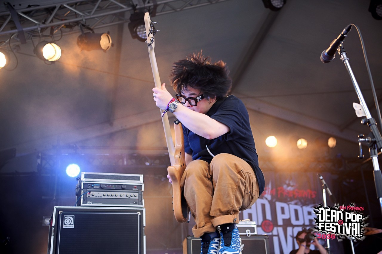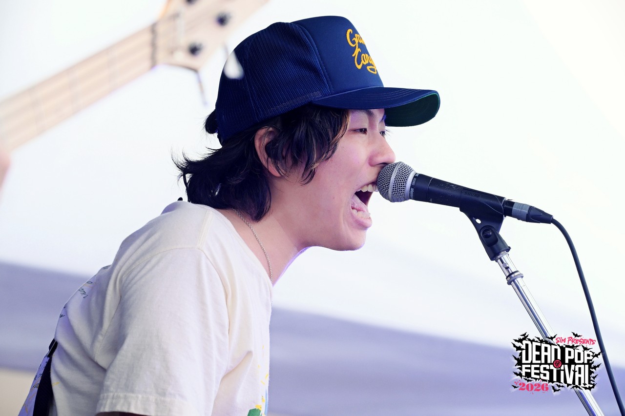 無闇にノリを求めることなく、爽快でコクのあるメロディーをいいビート感で響かせ、Yasu、Sota(Gt)、Matt(Ba)、Ryuto(Dr)も見事に連動。客席をしっかりぶちアゲながら最高のスタートダッシュを決めていき、風もそれなりに強く吹くが、輝かしい美メロは決して押し潰されないことを証明してくれたのが「GRAYSCALE」。Sotaのフレーズもいい存在感があり、会場を8ビートで揺らす様もいい。曲中、Yasuが「最高だ、DEAD POP!」と思わず口にしていたが、そうだよな、と頷ける状況だ。
