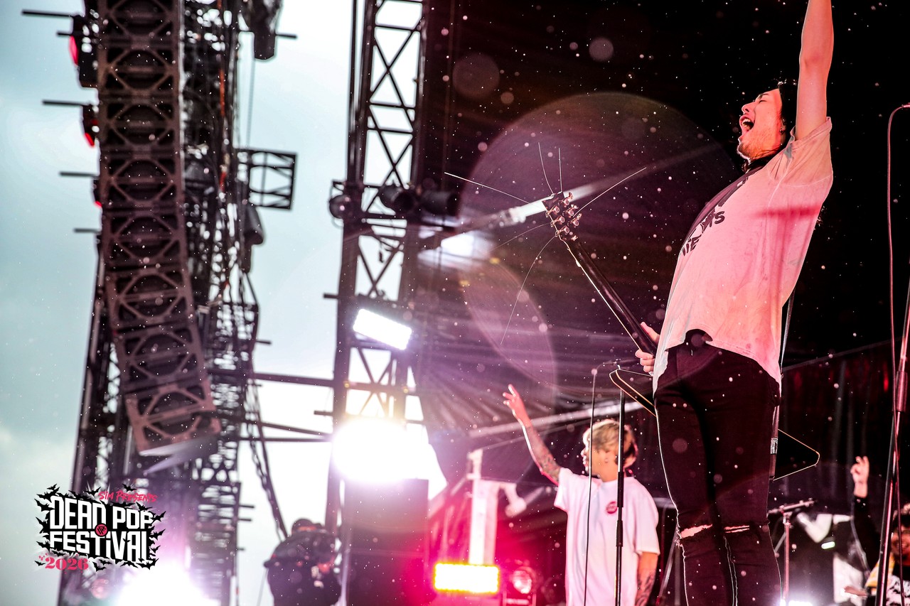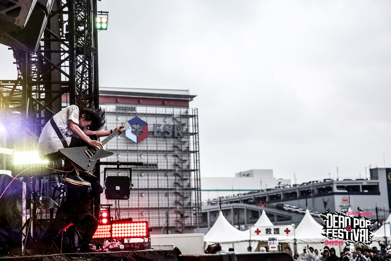 そうくるならば、と当然オーディエンスも大歓迎しながら爆発しまくり。雨雲を突き破るYUJI(Ba&Vo)の歌声もたまらない「I’m In Dream」、「めちゃめちゃ雨降ってるやんけ! お前ら、諦めろ!」と猪狩の最高なアジテートから放った「Be The One」と続く中、ダイバーもひっきりなしに飛び交い、客席から大コーラスも響かせる。