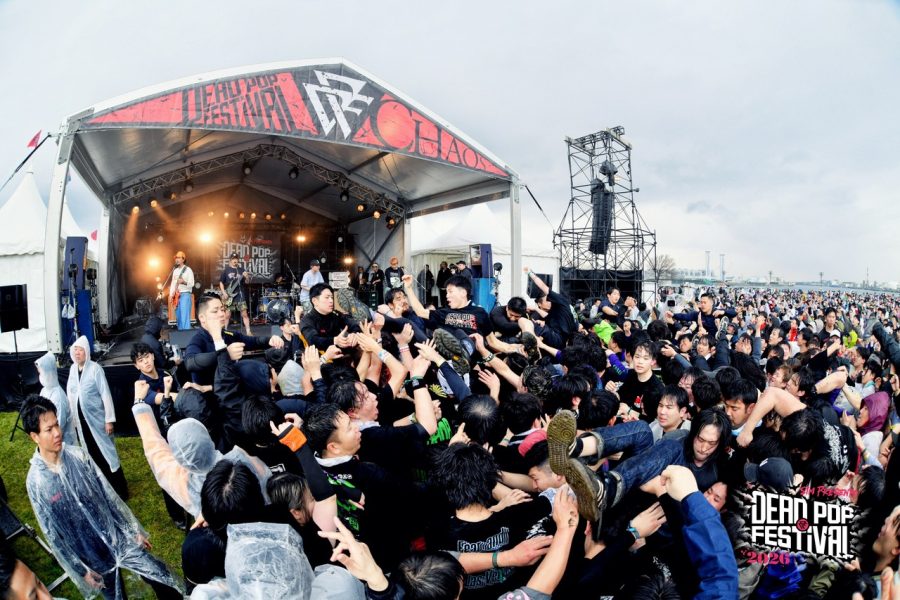 積み重ねてきたキャリアの分だけ、音やパフォーマンスには厚みが出るものだと実感。この日のSHADOWSのライブを観て、晴れやかな気持ちになった。低く鋭く突き抜ける重低音に、頭上を走る閃光のようなハードコアサウンド、そして目の前に立つ5人の圧巻のパフォーマンス。そのすべてが同時に押し寄せ、体の奥底から力が湧き上がるような感覚に包まれる。CHAOS STAGEの空気が震え、轟音の波と空から落ちてくる小雨が全身を覆う。本番さながらのリハを終え、ヘビーなドラムサウンドに乗せてHiro(Vo)がステージに現れた。彼の「飛べ、全員! JUMP! Let’s Go!!」を合図に「WALK AWAY」がスタートする。