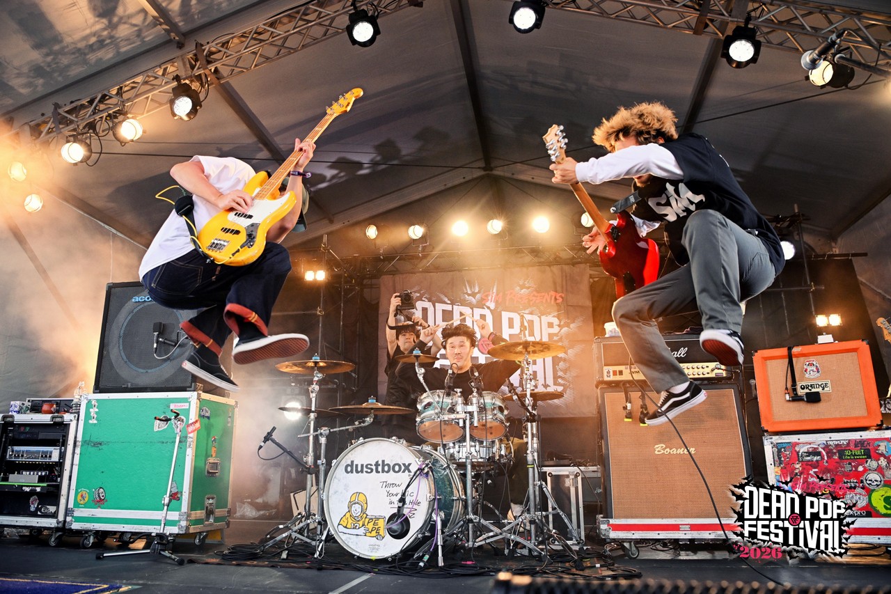 ラストを飾ったのは「Jupiter」。SUGAが何度も「ありがとう」を挟みながら届けたこの曲で、全9曲のステージは駆け抜けるように幕を閉じた。観客の体温、汗、笑顔、そして声が混ざり合った空気は、彼らしい清々しさを帯びていた。SUGAとJOJIの柔らかな表情は、その熱量とともにオーディエンスひとりひとりの胸にしっかりと刻まれたはずだ。今やSNSの再生回数や数字が話題になる時代。しかし、そうした数だけではこのライブの温度は決して伝わらない。本当に大切なのは、目の前の人と音楽でつながること。この日、dustboxが見せてくれたのは、まさにその瞬間だった。画面や数字では測れない、音と体、空気と感情が交差する生の体験。DEAD POP FESTiVALに流れた奇跡のような時間は、きっと誰の胸にも鮮烈に残っただろう。