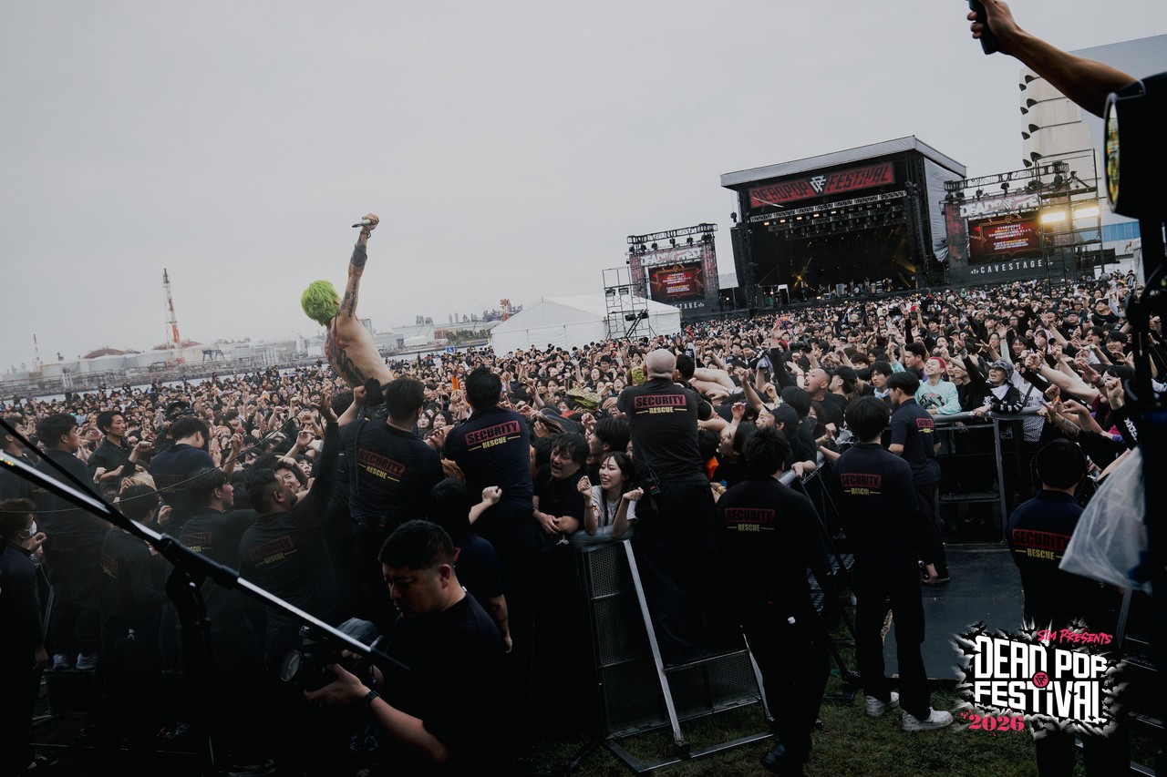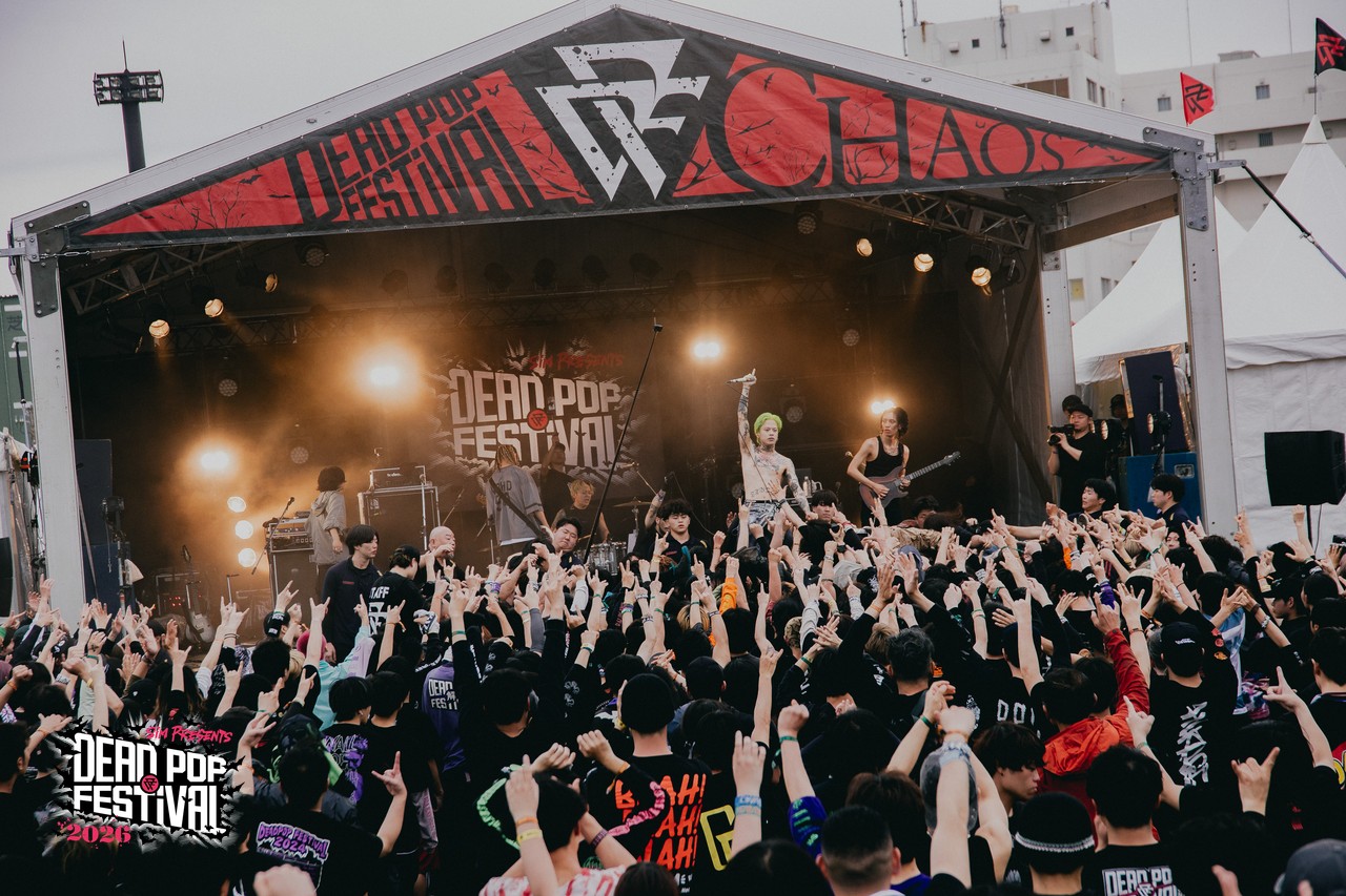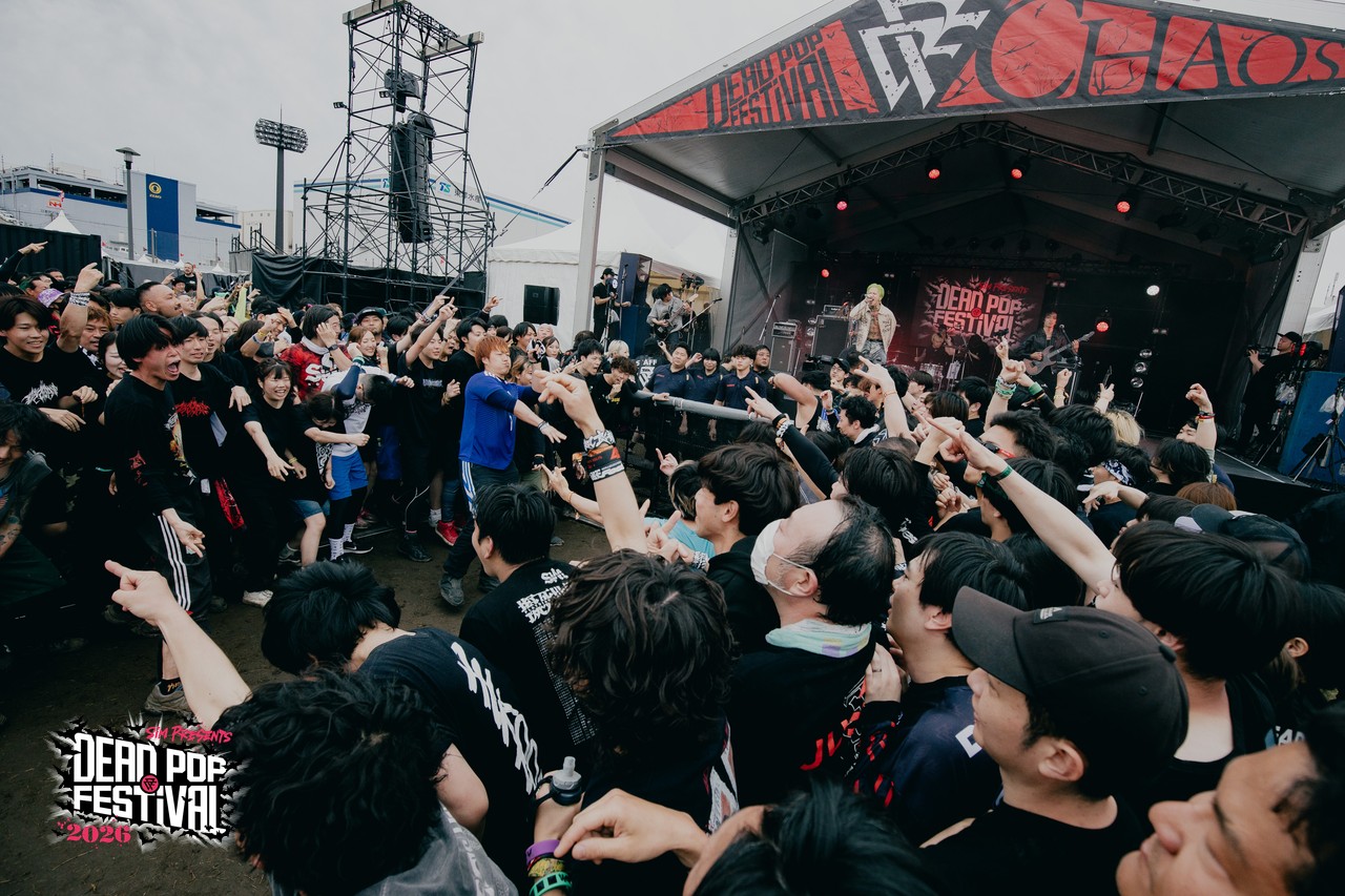 DEAD POP FESTiVAL 2026 2日目も後半戦に差し掛かろうというCHAOS STAGE。次に登場するのは札幌からの刺客、HIKAGE。満を持しての初出演だ。「みんなでリハーサルやろうぜ!」とGEN(Vo)が言い放ち、爆音のアンサンブルに身体が反応したオーディエンスが次々にCAVE STAGEから集まってくる。気づけば、CHAOS STAGEの後方まで人がギッシリ! HIKAGEへの期待度がそこに現れていた。