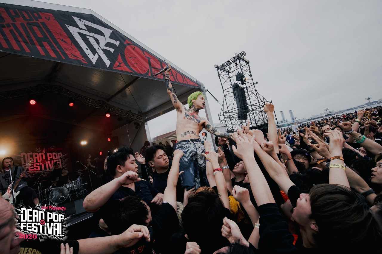 「新曲やります」と「raw」。こちら、実に攻めまくる攻撃力抜群の楽曲なのだが、ブレイクビーツに合わせてモッシュにダンス、走るビートに合わせてGENが「飛んでこい!」と叫べば一斉にリフトが上がってクラウドサーフの波に。矢継ぎ早に届けられた3曲によってフロアは完全な混沌状態。DEAD POP初出演とは思えないほどの貫禄とCHAOS STAGEとのシンクロ率だ。見事過ぎる。