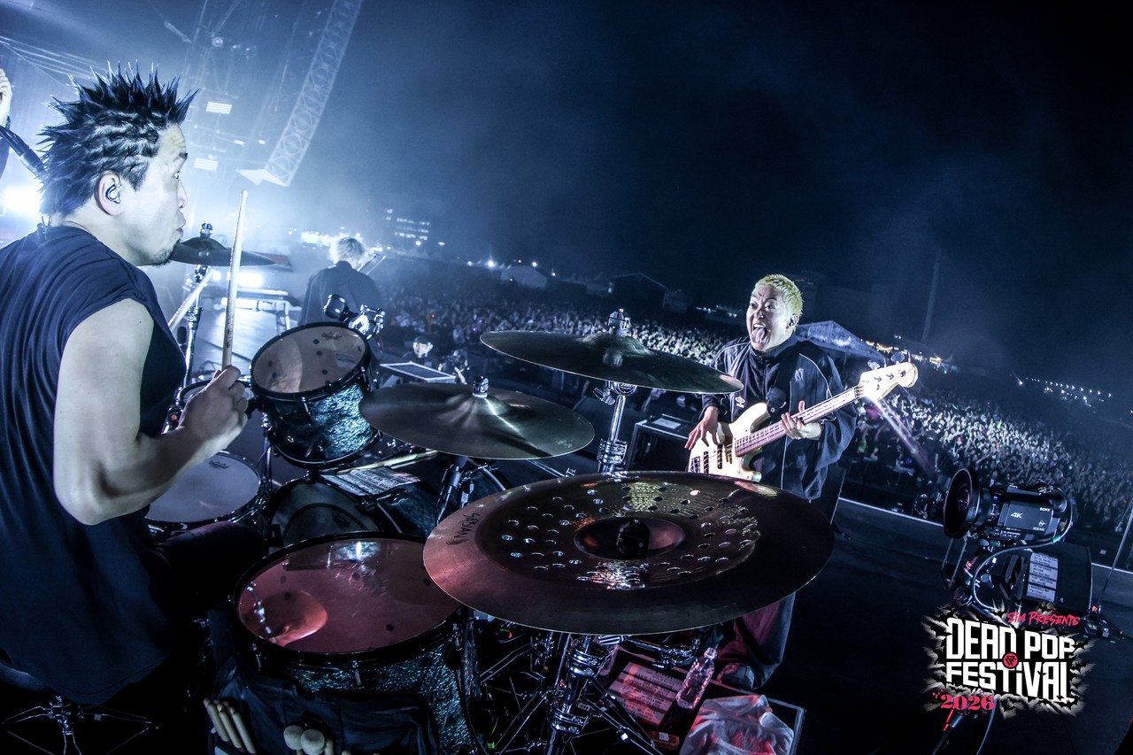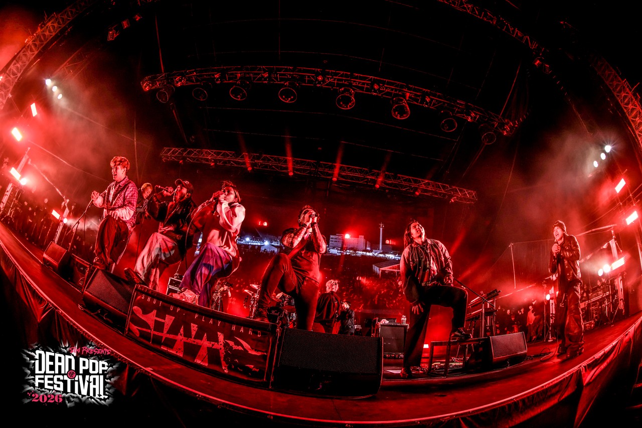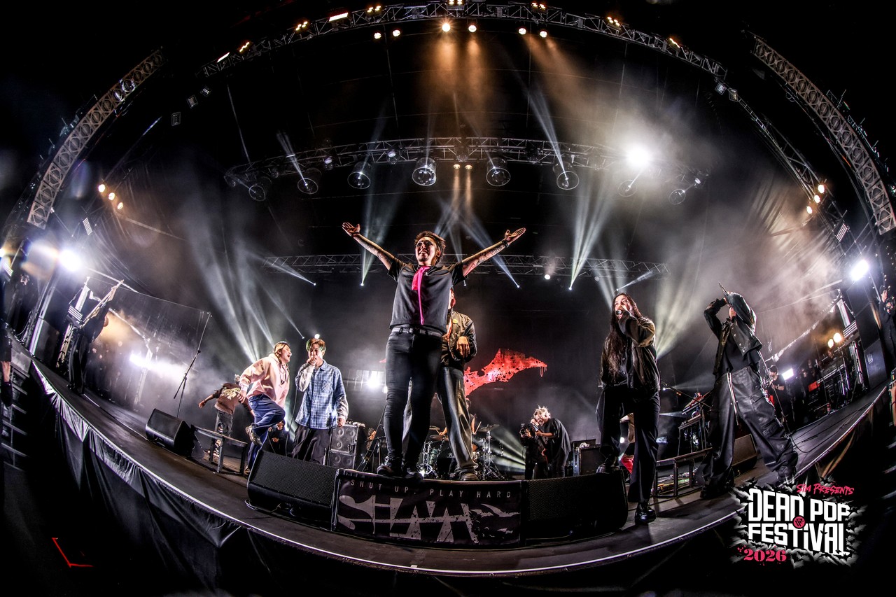 そう言うとDEAD POP FESTiVALがライブハウスで行われていた頃からのキラーチューン「KiLLiNG ME」をお見舞いし、怒涛の勢いで本編を終えた。アンコールでは、昨日は雨で割愛された共演者との集合写真撮影も今日はしっかり収めて、来年のDPF開催も発表。春らしく(?)野球の歌「BASEBALL BAT」を高校球児に贈り、最後はMAHがフロアをぱっくり割る。フィーチャリングゲストとしてKoieを呼び込むと、Koieの提案で若手も呼びこむことに。袖から飛び出してきたRui(See You Smile)、PK(PROMPTS)、Takuya(SABLE HILLS)、Yui(Earthists.)と共に、「f.a.i.t.h」で大団円。DPFが作り上げてきたシーンが間違いなくここにあった。だからMAHからこの言葉が出たのだろう。「もうさ、DEAD POP世代って呼んでもいいんじゃないの?」